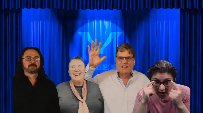 Based on your suggestion for the title of a TV show pilot that never aired, the cast and technical staff create an improvised TV show right before your eyes. Every performer is in their own home but our approach to online improv will make you feel like they are in the same room together. This show features some of the best technology Moment Improv has to offer. From studio quality intros, establishing shots, special FX and more, this is guaranteed to be an improv show like none other.